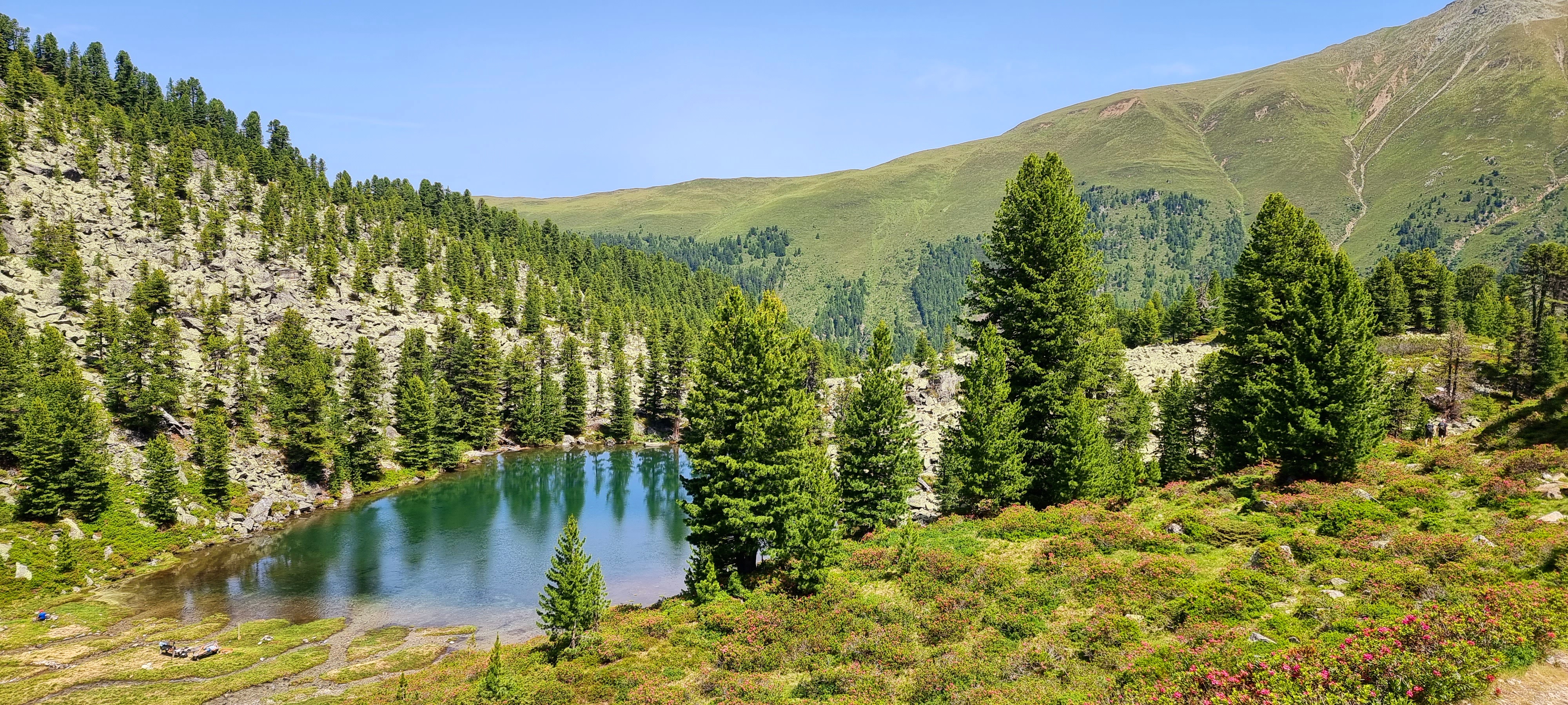 Gleich zu Beginn im Pitztal, ist das schöne Wandergebiet in Jerzens. Die Hochzeiger Seilbahn direkt am großen Parkplatz führt zur Bergstation. Von dort geht es mit einem Sessellift zum Sechzeiger auf 2395m oder direkt los. Wir nutzen sie Seilbahn als Aufstiegshilfe und wandern los. Der Aufstieg geht über Wiesen bis zum Sattel. Der Aufstieg zum Gipfelkreuz erfordert Trittsicherheit, ist aber machbar.